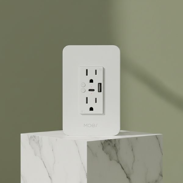 Upgrade your home with the MOES Smart WiFi Type-C USB Outlet, featuring remote control, voice compatibility, and individual port management, blending safety, style, and effortless smart-home convenience.